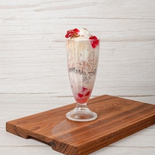 A rich blend of saffron, sevai, sabja, milk, and vanilla ice cream for a royal, creamy treat.