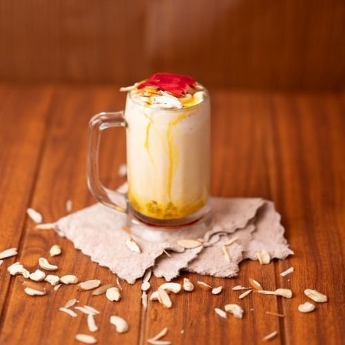 A falooda loaded with rich dry fruits for that perfect royal finish. Dry fruits, Sevai, sabja seeds, milk and vanilla ice cream.